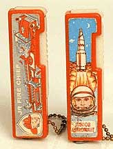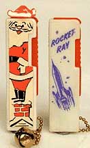 Many of these lights had a bell or whistle or tiny gun attached to the keychain to add to the experience.