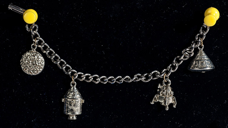 | 1969 Apollo gold plated charm bracelet from Kennedy Space Ctr. item #25-202, $15.00 | 1969 charm bracelet from NASA Goddard Space Center gold tone. item #25-203, $20.00 |