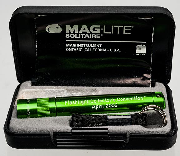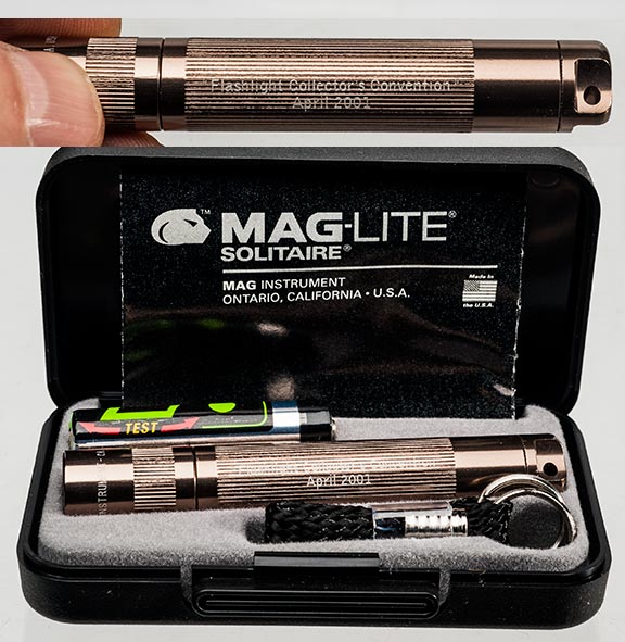 2001 Mag light Solitaire flashlight commemorating the 2001 Flashlight convention in Allentown, PA. item #17-410, $16.00 |