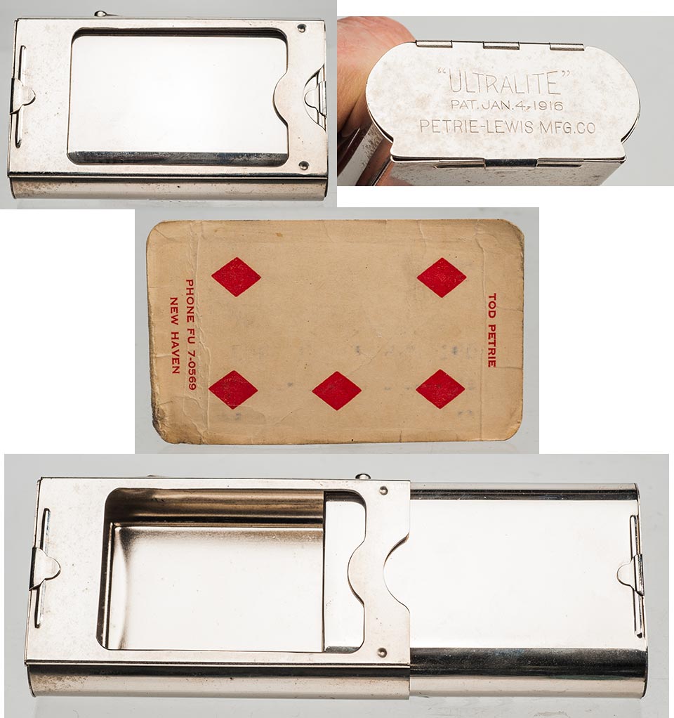 RARE - 1916 Petrie-Lewis Ultra-Lite Flashlight. The Ultra-Lite was a vest pocket light with a metal over shell that was to direct the light down. P-L is well known to magicians and known for their high quality magic apparatus, used by