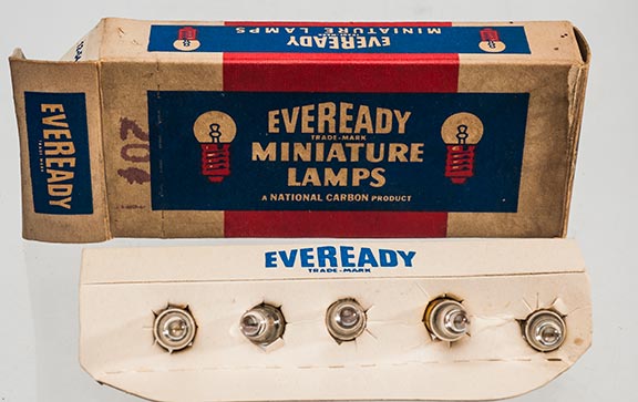 | 1930 Eveready, 9 #114 bulbs, 1.2 volts, 1 groove instead of threads. item #17-444, $6.00 |