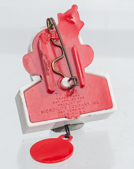 | 1957 Micro-Lite "Twinkie" lapel light, 2 x 1 1/2 inches, N cell, item #TWINKIE101, $16.00 (6 oz. for shipping) | |