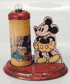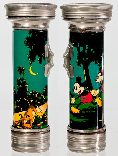 | USALite Mickey Mouse light. It was made in 1935 and 1936 and used 2 "D" cells. There were 3 other USALite lights made in a similar style that I am seeking. They were the Donald Duck Serenade, The Three Little Wolves, and the Silly Symphony Joy-A-Teers. |