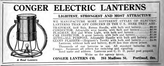 A very rare 1916 Eveready Inspection light. You could poke it into a furnace or into a throat to light up the area. If you removed the bulb and put a platinum filament on the end, it would light your gas lights or the old fashioned gas stove (no pilot light). The middle light is a 1916 Franco lantern with a great design and the last is a Conger lantern from about 1918 with a wooden handle and a formed tin body that was used on the railroad.