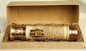 A trio of 1930 Winchester/Bond presentation lights. Gold plated, Silver plated, and ivory finish. 2 "D" cell. These can also be found with the Barney & Berry name or the Rexall name stamped on the end cap.