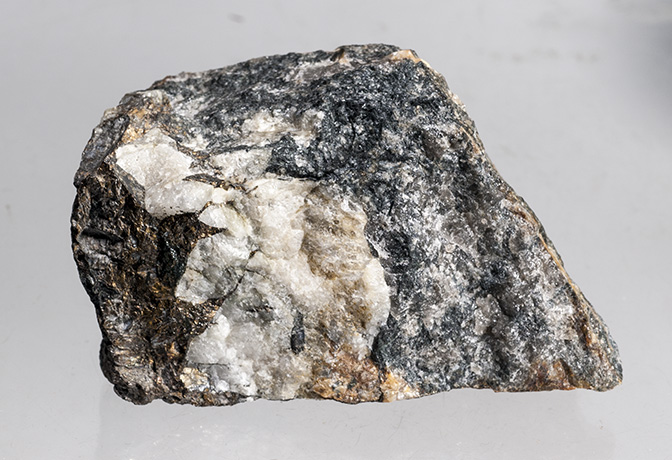 Rare walstromite and sanbornite from Big Creek, Fresno, CA. The walstromite fluoresces orange-pink SW and the sanbornite fluoresces blue LW. It weighs 1.7 oz. and is 2.8 x 1.4 x 0.3 inches.(SOLD), item #2650 |