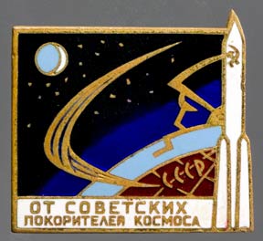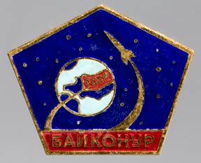 A lapel pin from the Baikonur Cosmodrome. The Baikonur Cosmodrome was the Cape Kennedy of the Soviet Union and aother Soviet space pin.