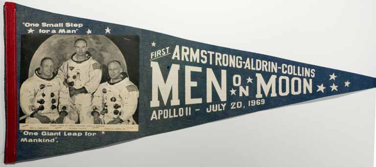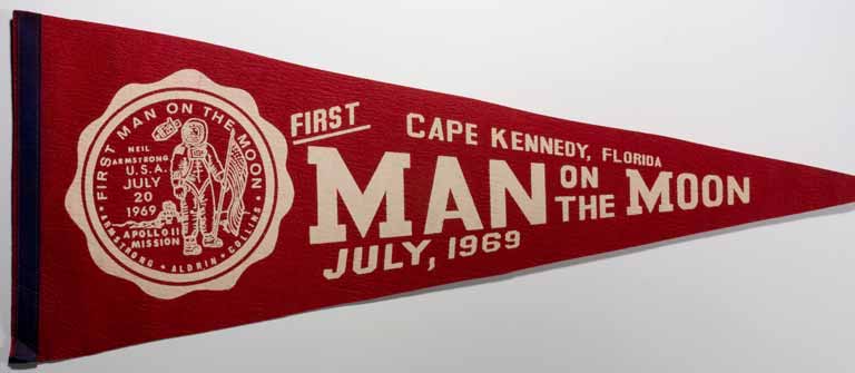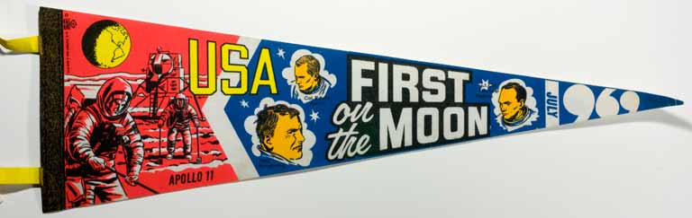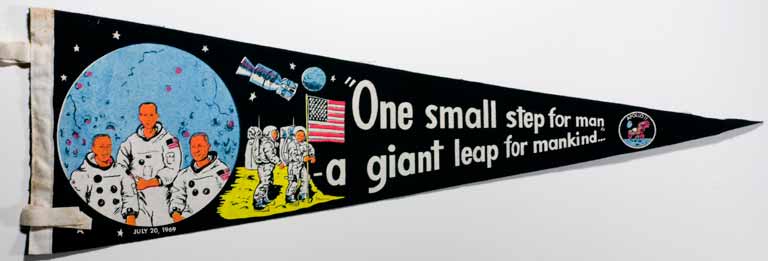 “First Man On The Moon” commemorative items, were produced in quantity. The variety can be overwhelming to a collector so it pays to be selective. Items such as medallions, plates, drinking mugs, etc. were made by the tens of thousands and often, the item was promised to increase in value. Most of these collector pieces have not increased in value. The reason is that collector items were usually saved and kept in perfect condition. Items meant to be used were rarely saved nor are they likely to be in mint condition. The toys, games and non-collector pieces which were produced in lesser quantities were thrown away and will be difficult to find. Items inspired by the flights before and after the first moon landing are usually scarcer than the moon landing pieces.