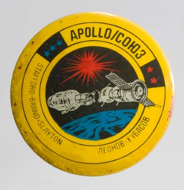 An unusual English/Russian Apollo-Soyuz button.