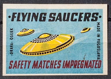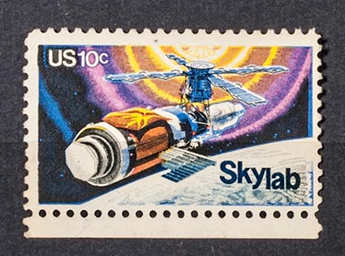 10 cent unused Skylab stamp. $6.00, item #16-115 1950s Flying Saucer matchbox label. item #16-116, $6.00
