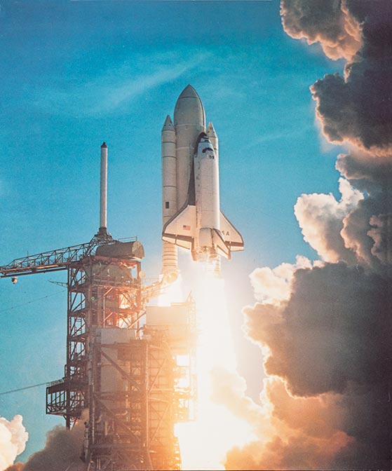 1980s Official Space Shuttle launch photo, 8 x 10 inches. item #16-118, $6.00 1950s Rocket Jet water pistol by US Plastics, Pasadena, California. Unusual early Ray Gun. item #16-138, $10.00