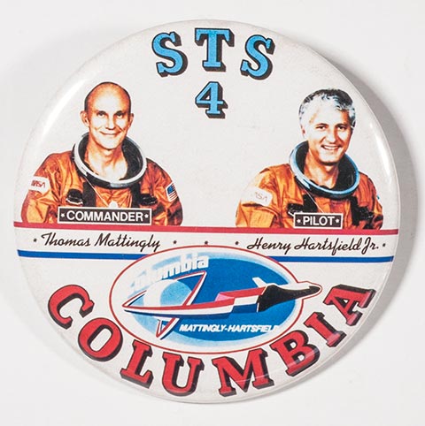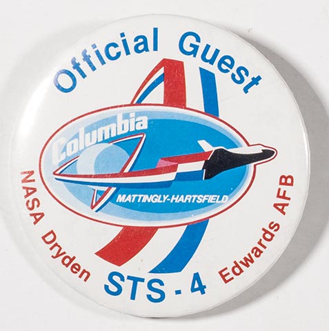 1982 Space Shuttle STS-5 button, 3 inches in diameter. item #16-123, $10.00 1982 Space Shuttle "Official Guest" STS-4 button, 3.5 inches in diameter. item #16-124, $10.00