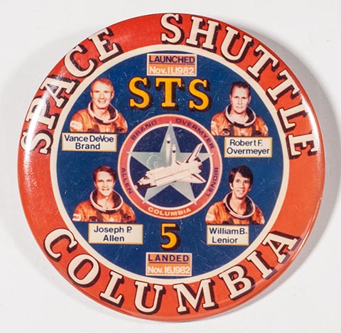 1982 Space Shuttle STS-5 "Official Guest" button, 3 inches in diameter. item #16-125, $10.00
