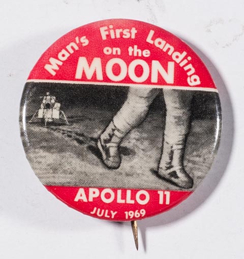 1969 Rare 1st Landing on the moon pin, 1 3/4 inches in diameter. item #16-130, $20.00