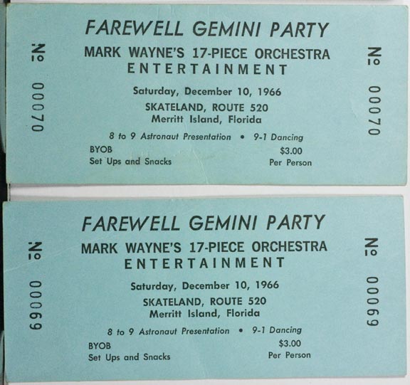 | Two original tickets to a party given for the Gemini astronauts at nearby Skateland in Merritt Island, Florida. Very cool piece of ephemera. item #16-207, $20.00 | 1981-1982 Space Shuttle stamps, plate block. Unused. item #16-113, $12.00 |