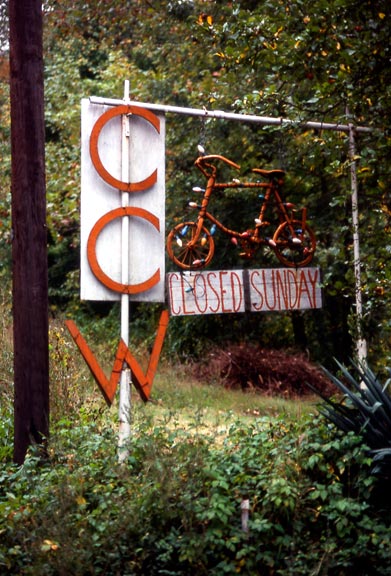Traveling over the years, I have always carried a camera with me. If friends asked why I was bringing the camera, I told them that if a flying saucer ever appeared, I would be ready to take a photo. Well, no extraterrestial flying saucers ever appeared, but loads of interesting places and people could be found everywhere that I traveled. In addition to the people and places, I began to shoot scenes featuring signs. I even traveled to Schneider, Indiana for a photo. My camera of choice was an SLR Nikormat with a variety of lens.